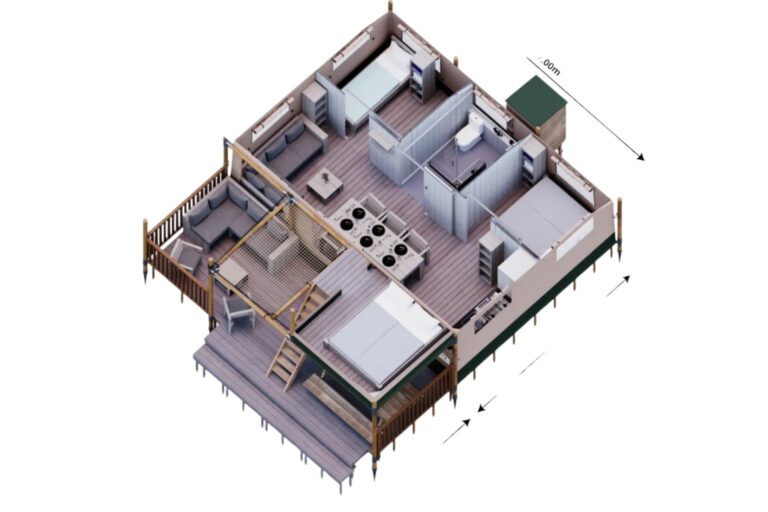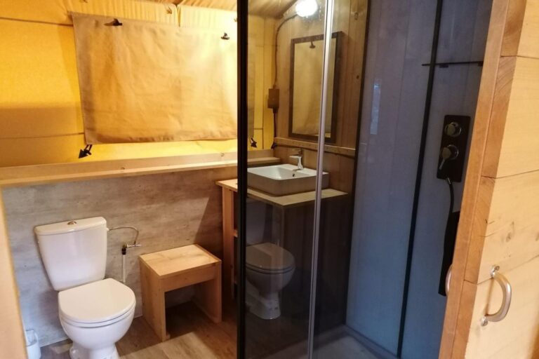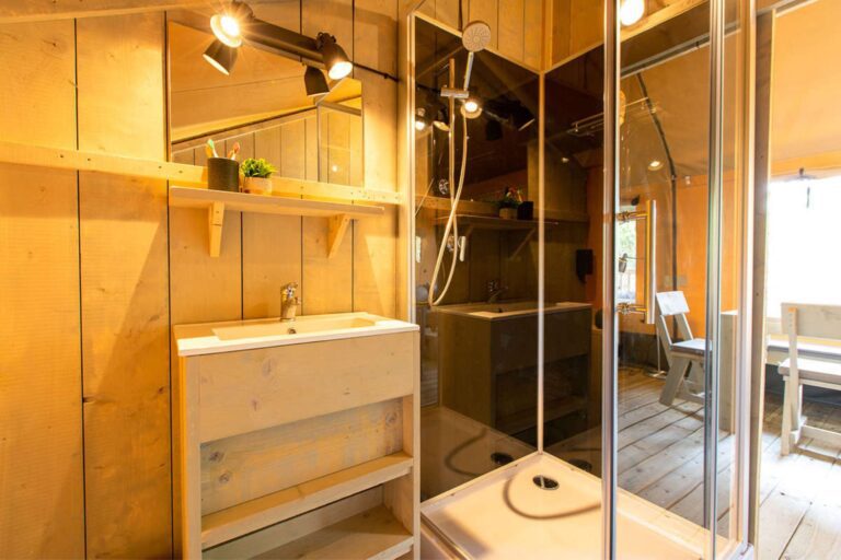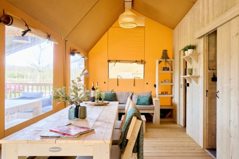 Een extra grote glamping tent met alle nodige voorzieningen: