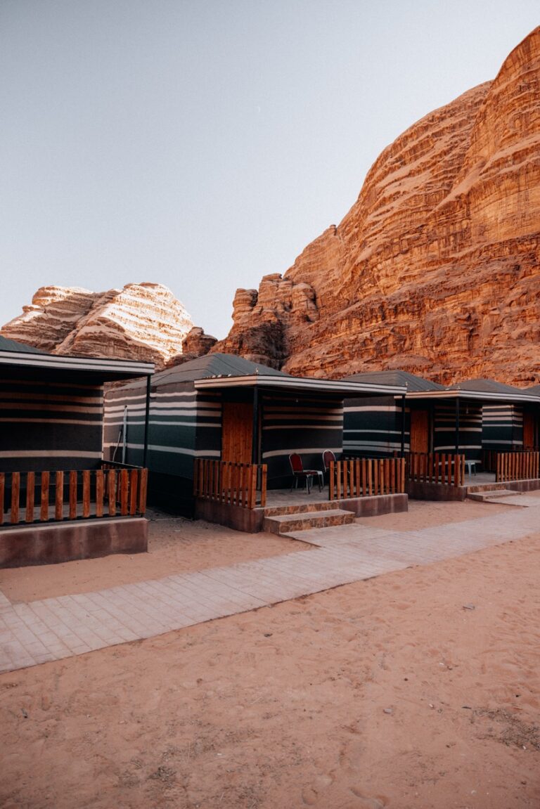 We overnachten in authentieke desert camps, midden in de eindeloze leegte van de Jordaanse woestijn. Je slaapt in een echt bed en wordt, afhankelijk van je groepsgrootte, ingedeeld in traditionele Bedoeïenententen.